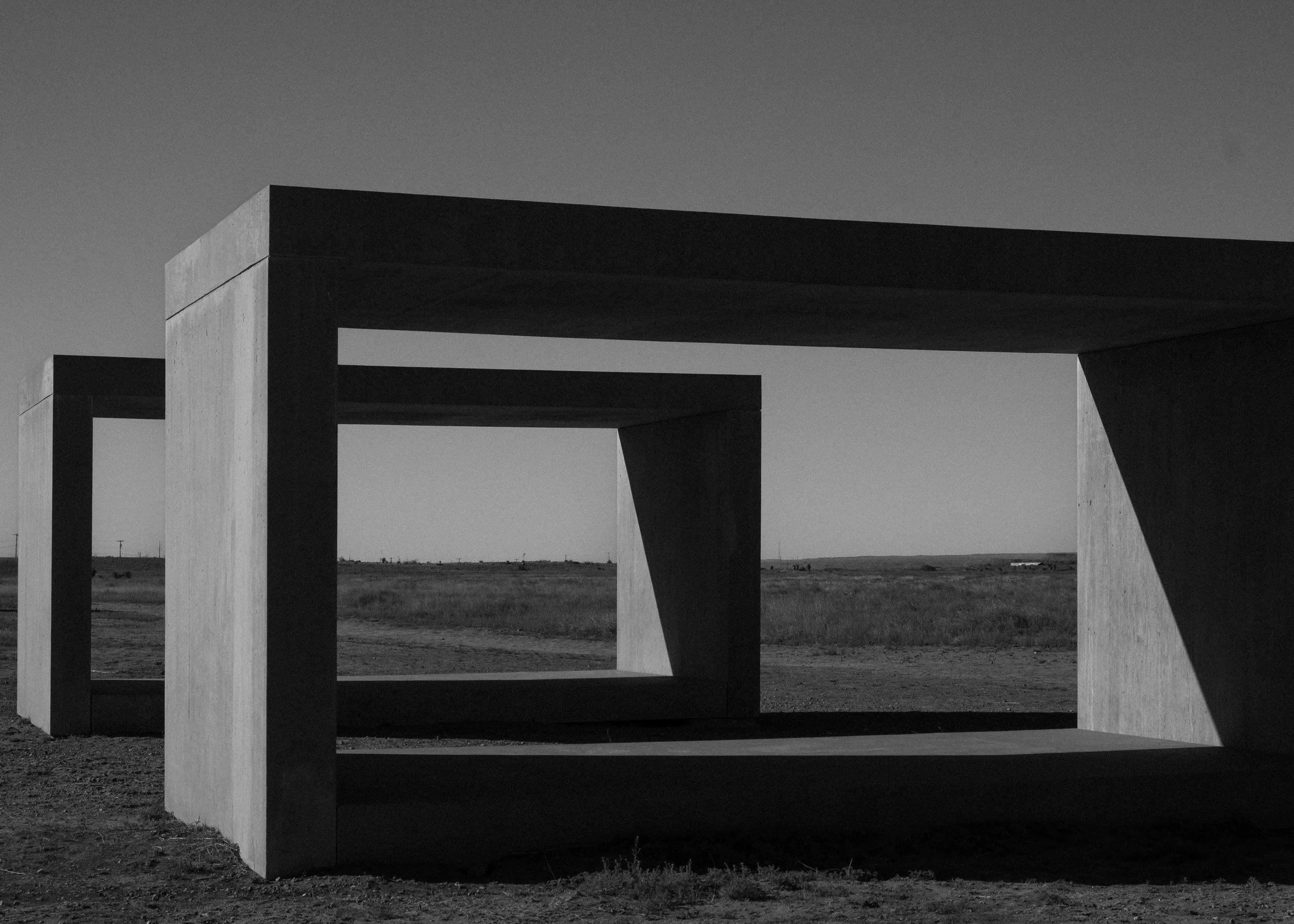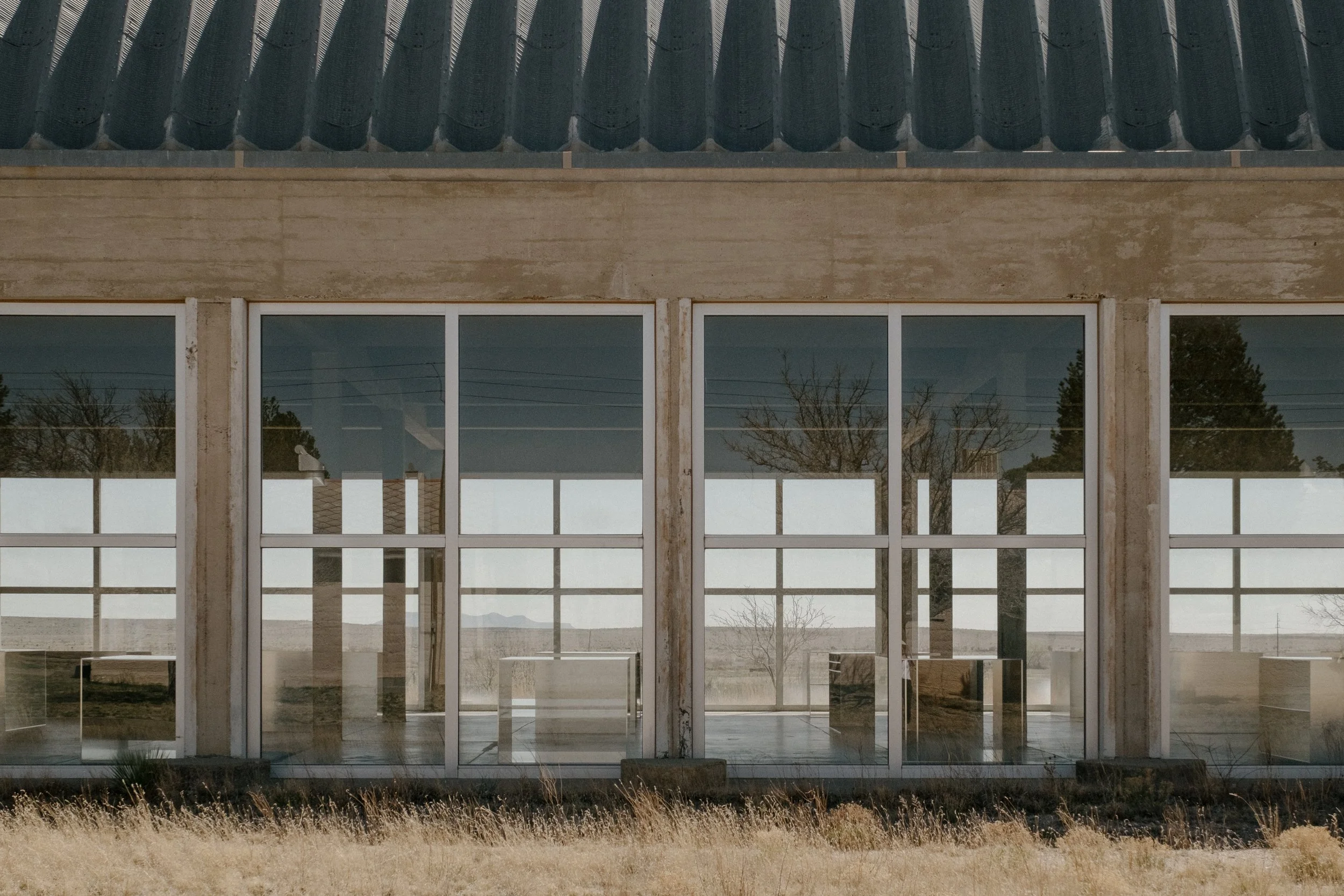 The Chinati Foundation sits on the edge of town, housed in what was once an abandoned U.S. military site. Judd believed art, architecture, and their surroundings were always in dialogue and wanted a place for a permanent collection of his work; along side that of a select few artists. What makes Chinati unique is that visitors experience the artwork as the artist intended, rather than through the lens of a gallery’s curation. This vision is perhaps most profoundly felt inside the former artillery sheds, where Judd’s 100 Works in Milled Aluminum are housed. Each aluminium box is made to the same external dimensions, yet with in that volume there are 100 different configurations. What is a simple concept becomes complex and multi faceted when seen together and in the space designed for them. Judd transformed the industrial buildings by installing floor-to-ceiling glass windows allowing the sun the pour in and views of the landscape out. Through out the day the shifting sun transforms each sculpture; some reflecting the light so the aluminium almost disappears, while others becoming deep dark voids blocked out all light.